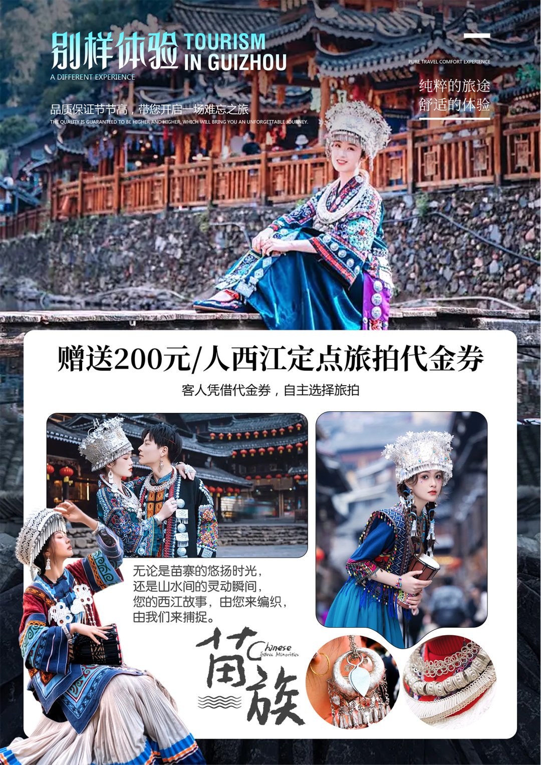 7、赠送200元/人西江定点旅拍代金券,客人凭借代金券,自主选择旅拍。