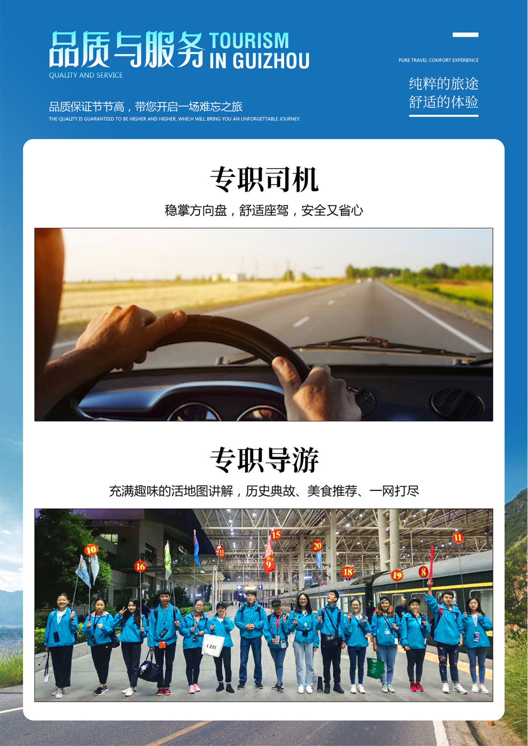 11、专业导游团队,为您讲述多彩贵州人文风貌,倾情演绎绚烂旅程。