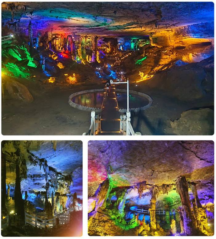 后前往游览【九龙洞】(不含景区往返观光车16元/人,费用需自理),九龙洞坐落于贵州省铜仁市碧江区九龙洞风景区。踏入溶洞,仿佛置身于仙境之中。形态各异的钟乳石在灯光的映衬下,如梦似幻,有的如利剑直插云霄,有的似仙女亭亭玉立。洞内不仅有迷人的钟乳石,还有灵动的地下河和气势磅礴的瀑布,共同构成了这奇妙的地下世界。