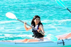 B套餐人员体验海上项目皮划艇,也叫独木舟,约60分钟。