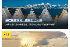 1、牛背山住宿可升级球形大帐篷独卫,如帐篷酒店满房的情况,我们则安排至:牛背山星铂酒店box房型,标间独卫。