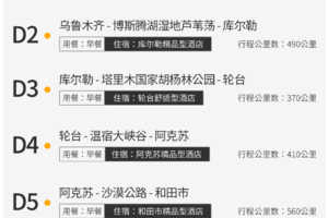 南疆地域辽阔,行车时长,比较大的难度就是坐车时间比较长。基本没什么长时间的徒步,也没什么爬山,在塔河胡杨林,只要你喜欢,也可以走上好几个小时,所以有一双舒适的旅游鞋和一双拖鞋(玩沙漠的时候用得上)和一个好心情很重要。