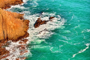 这里真是万柱擎天,它们组成了一堵堵抵挡着汹涌海浪的巨崖、线条扭曲的高墙和坍塌的石 柱,形成有蜂窝状结构的山坡,蔚为奇观!这就是万柱海岸!