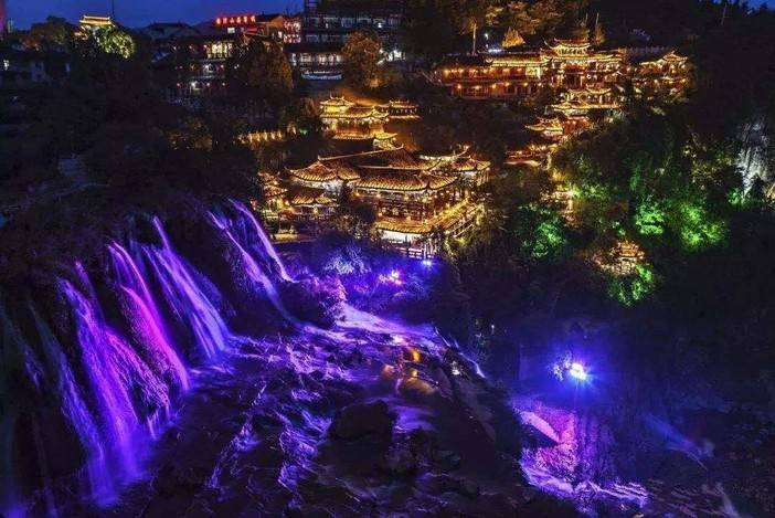 夕阳收起最后一道霞光的时候,盏盏街灯与霓虹灯在芙蓉古镇的夜空渐次亮起,暖冷、明暗渲染,勾勒出沱江与山城的轮廓。绚烂的光影中山、水、人、桥、吊脚楼……动静相融、相衬,层次分明、色彩斑斓,整座古城美轮美奂,尽显古镇的迷人。徜徉古城,令人如在画中游。