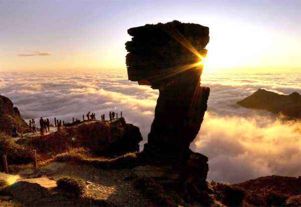 Ⅱ.或攀登「老金顶」,海拔2494米,放眼四顾,身边远远近近的石林出露无遗,千奇百怪且各具魅力,而巍峨起伏的群山,茫茫无际的林莽,似乎就微缩成眼前一面波光荡漾的碧海,就连气势雄伟的新金顶,此时也不过是脚下一座石磴而已。梵净山犹如巨大的天然氧吧,在这里呼吸沁人心肺的新鲜空气,远离城市的喧嚣,体验宁静致远的感觉。