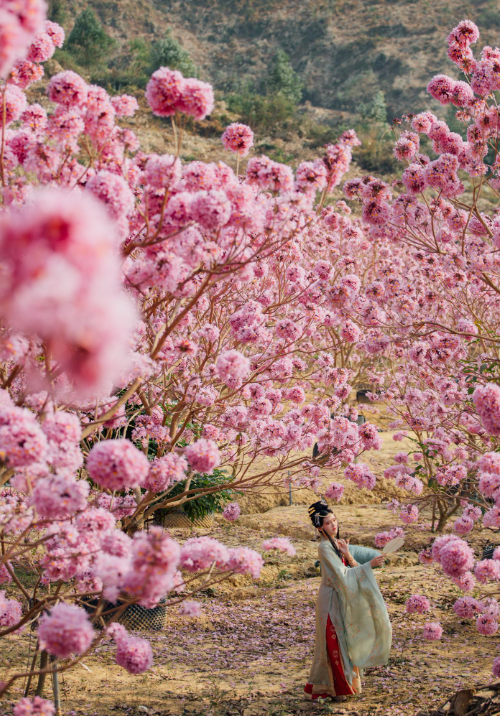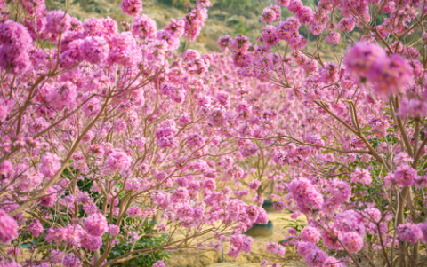 14:00抵达紫花风铃木景区,34万平方米的紫花风铃,满树铃铛、姹紫千红的紫花风铃盛开,构成一幅美如童话的仙境,会让你深深的感到震撼!摄影的天堂!
