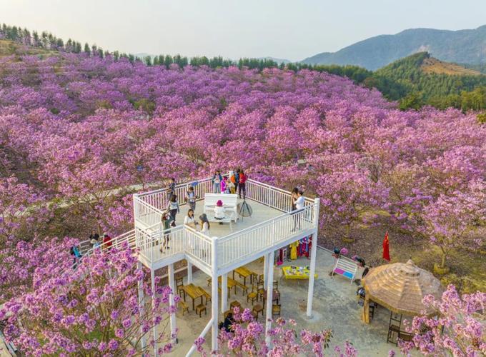 14:00抵达紫花风铃木景区,34万平方米的紫花风铃,满树铃铛、姹紫千红的紫花风铃盛开,构成一幅美如童话的仙境,会让你深深的感到震撼!摄影的天堂!