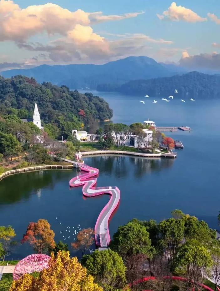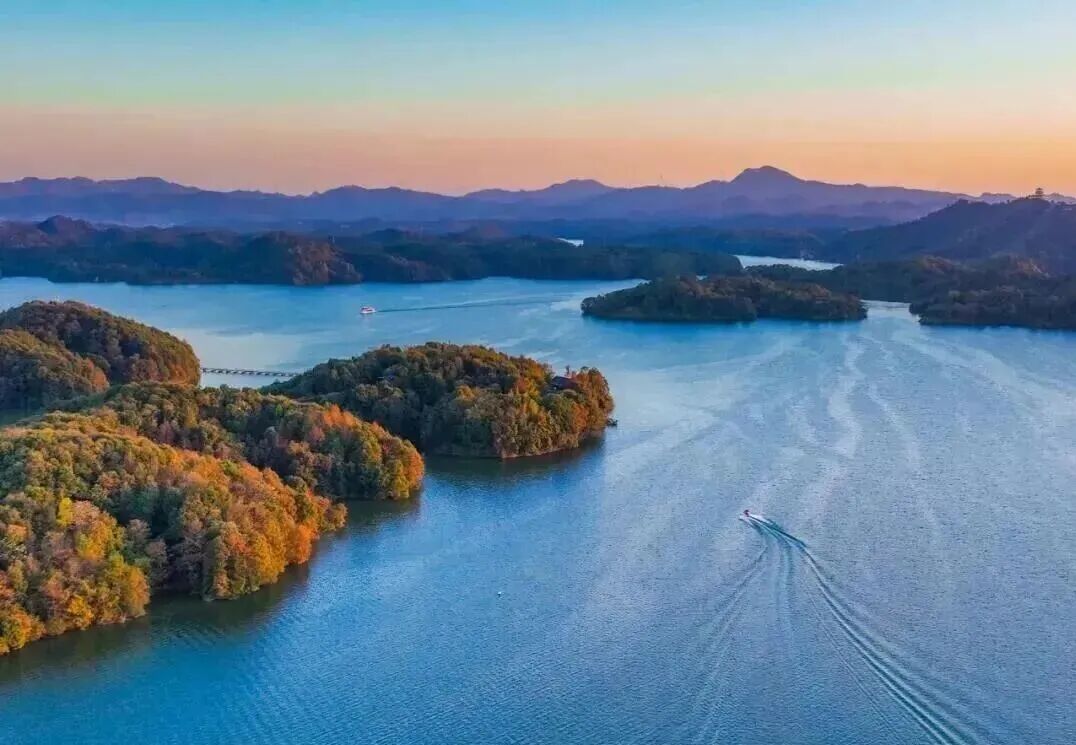 传说在这里落了地,化成一汪碧水,环抱着99座岛屿。水是澄澈的绿,像被仙女们的锦缎裙裾染过;山是温润的青,静静卧在水面,如未写完的诗句。