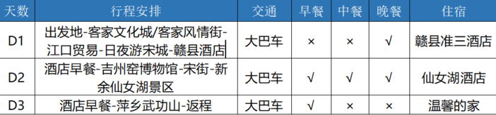 2.门票:行程表内所列的景点第一道门票 +含萍乡武功山门票+上下缆车+景交车+仙女湖门票(4岛联游船票)