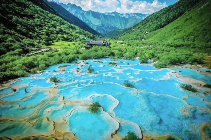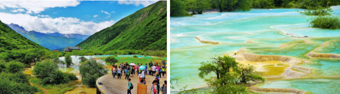 【黄龙风景名胜区】(5A景区门票已含  自理黄龙上行索道80元/人,下行索道40元/人、电瓶车20元/人、黄龙定位讲解器30元/人,黄龙索道保险 5/人/段需自理)