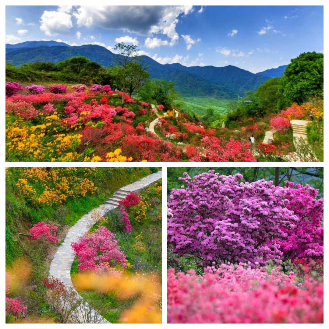 婺源篁岭,四月的篁岭,是杜鹃花的主场。杜鹃园内,鲜艳的杜鹃花在清晨怒放,山间薄雾一起,为娇艳的花园披上一层薄纱,花影朦胧,美得好似人间仙境。