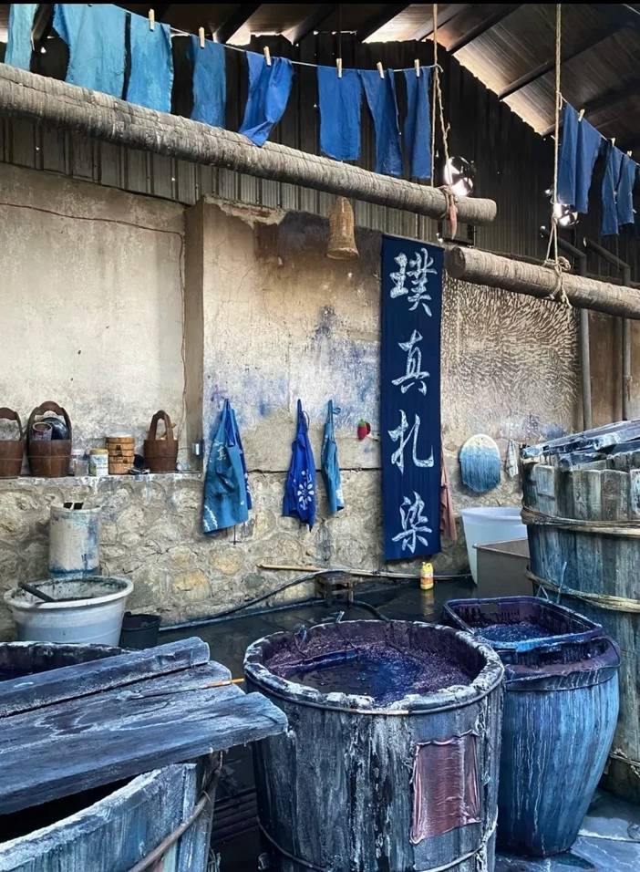 前往喜洲古镇【扎染体验】,依然可以看到白族建筑和穿着民族服饰的阿姨,民族风情浓厚。这里的扎染艺术十分出名,是很多游客来这里的首要原因,一匹匹长条的画布飘扬在古色古香的院落里,煞是好看。