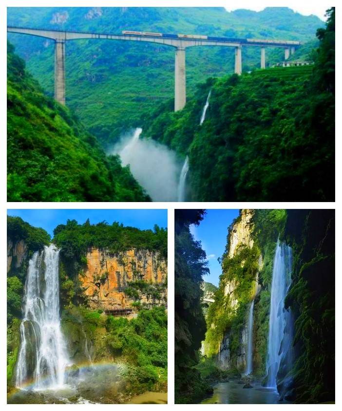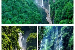 亚洲大的瀑布【黄果树瀑布】,它是世界名瀑中美丽壮观的瀑布,高84.8米,宽101米,气势磅礴,宏大壮观,是世界上独一能够从前后左右上下多角度观看的瀑布,大瀑布后有一水帘洞,长134米,贯穿全瀑,万幅绞绡掩罩六个洞窗,瀑声盈耳,惊心动魄,瀑窗水挂珠帘,伸手可及。