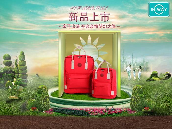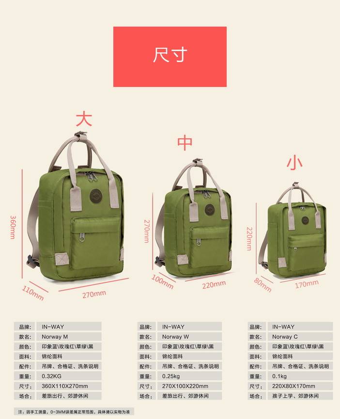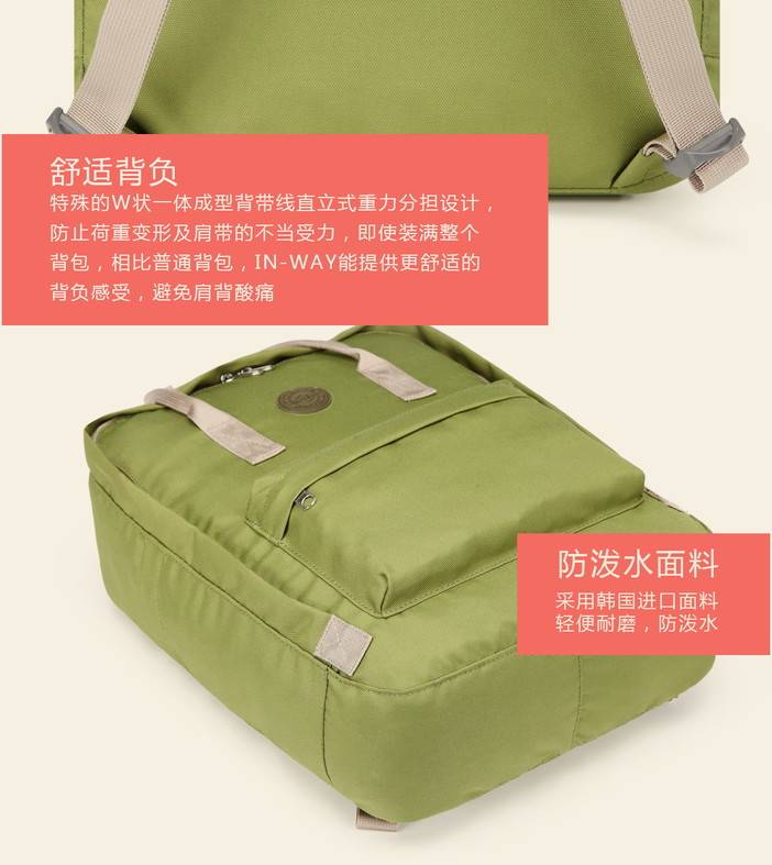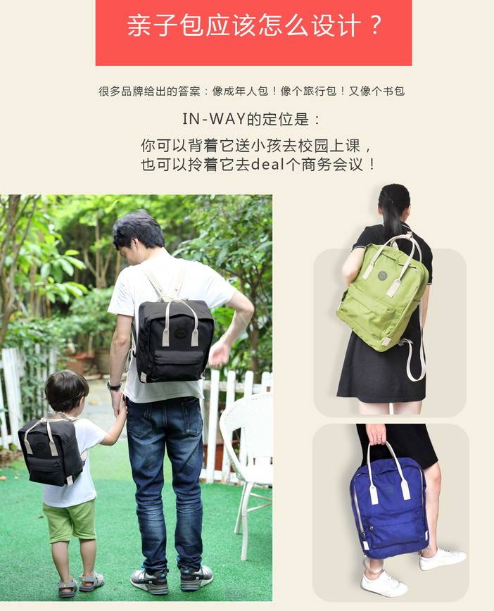 in-way/盈威亲子背包女户外运动双肩包子母包撞色轻便手提包女