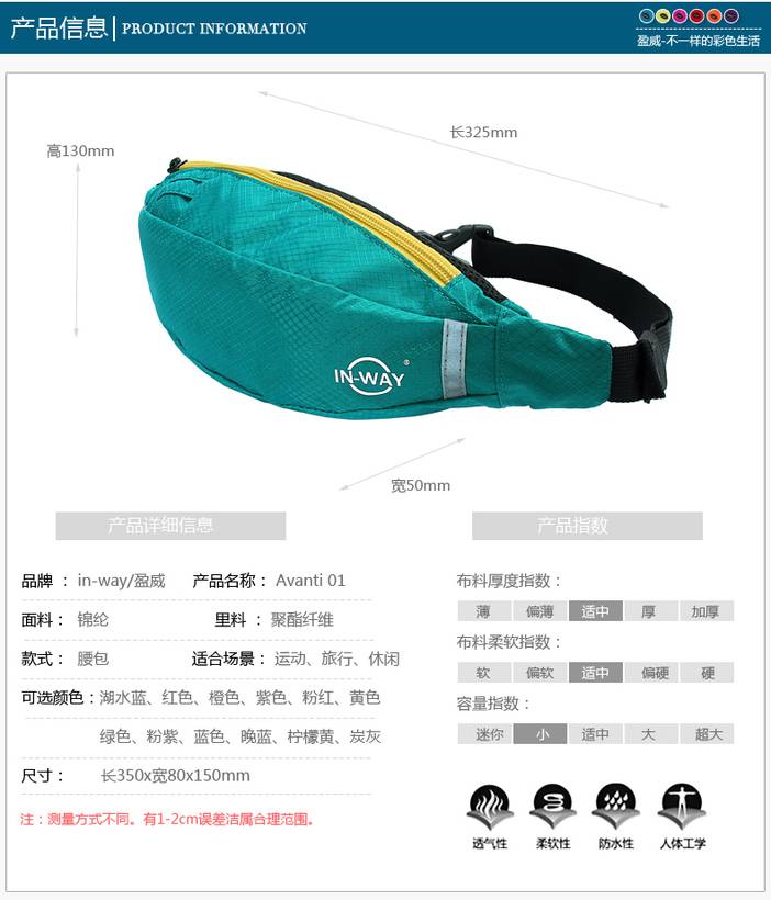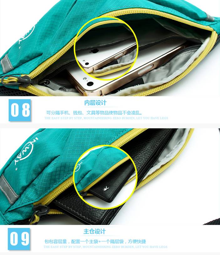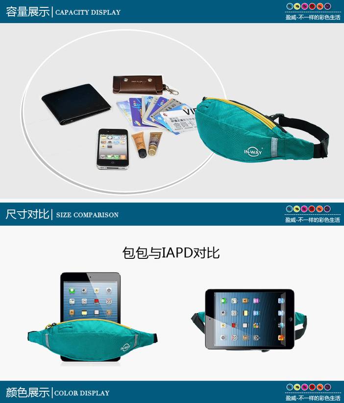 in-way/盈威13-0507新款户外男腰包运动胸包多功能便携迷你腰包