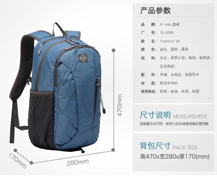 in-way/盈威12-0444新款男女户外运动轻便薄双肩可折叠包皮肤包