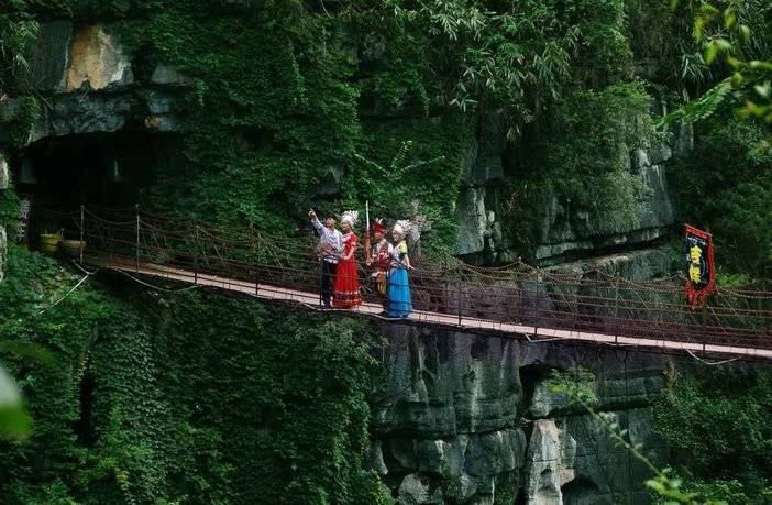 14:00 到达阳朔聚龙潭,游览【聚龙潭】(门票已含、游览时间约为2小时)岩洞内拥有特色景点:观景天桥,天然形成的“观音菩萨“,”海底世界“、”龙王宝座“、”皇宫御伞“……洞内无任何人工雕琢,保持原始岩洞风貌!景区为自然喀斯特风貌岩洞。