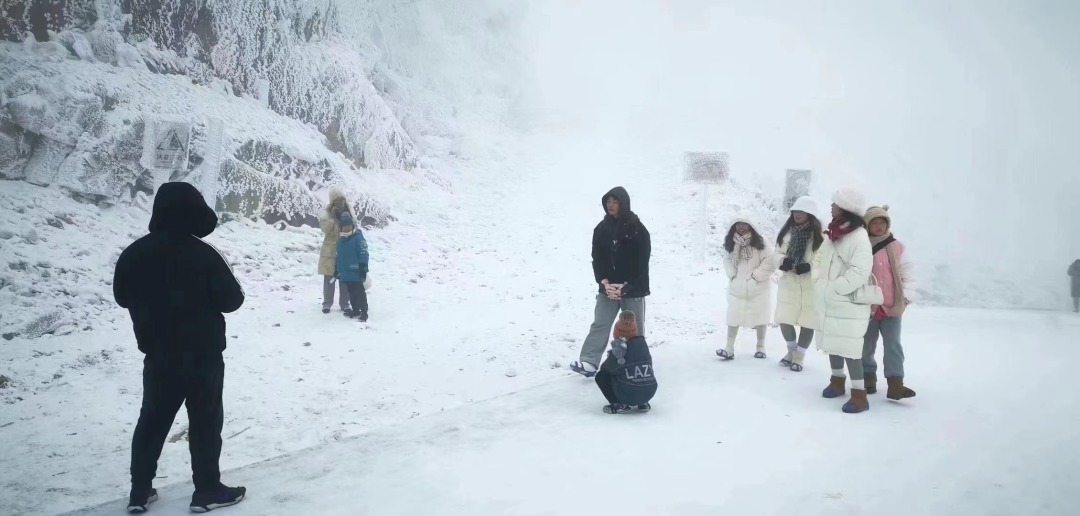 09:30左右到达云冰山上山,云冰山海拔约1500米,风景区主要是都庞岭、西峰岭、东边岭、葫芦岭四座山峰,与广东省连州市交界。景区内自然生态资源特点突出,以梦幻云海、浩瀚星空、古韵民宿、高山杜鹃、奇特冰挂、稀有苔藓、竹林溪谷等为主要核心旅游资源。被誉为华南的“避暑圣地”“人间仙境”“云海秘境”“南方雪乡”