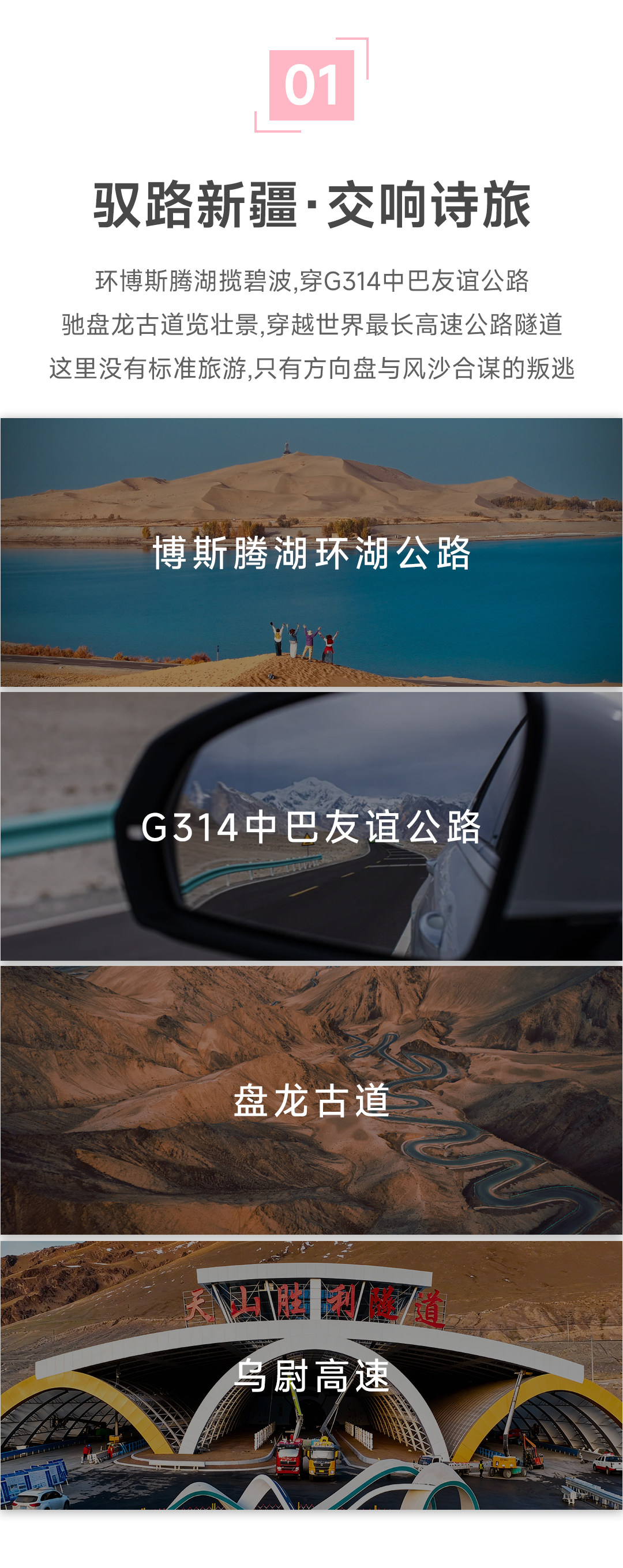 乌鲁木齐-320KM-天山胜利隧道-寻梨花-80km-博斯腾湖环湖公路精华段-190km-轮台