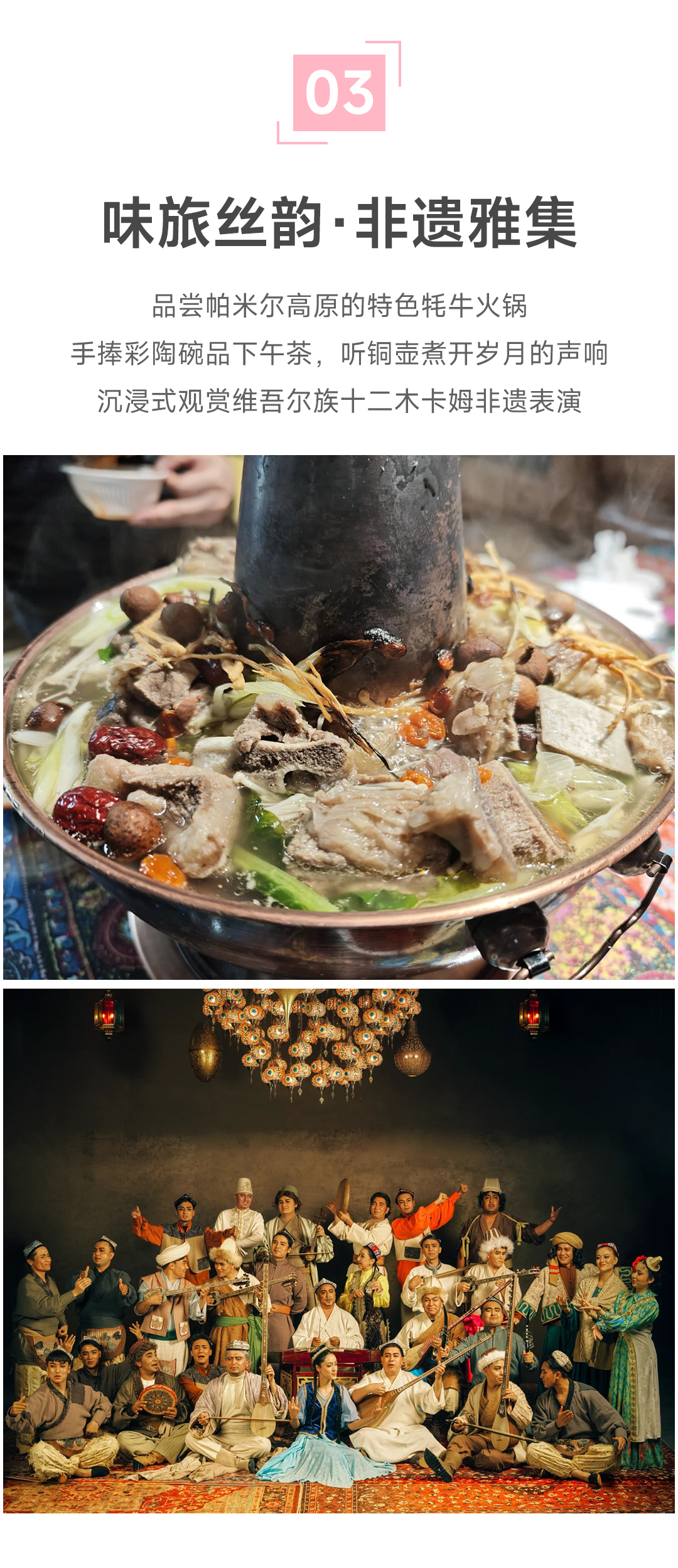 4.安排特色火锅+非遗表演:十二卡姆演绎。