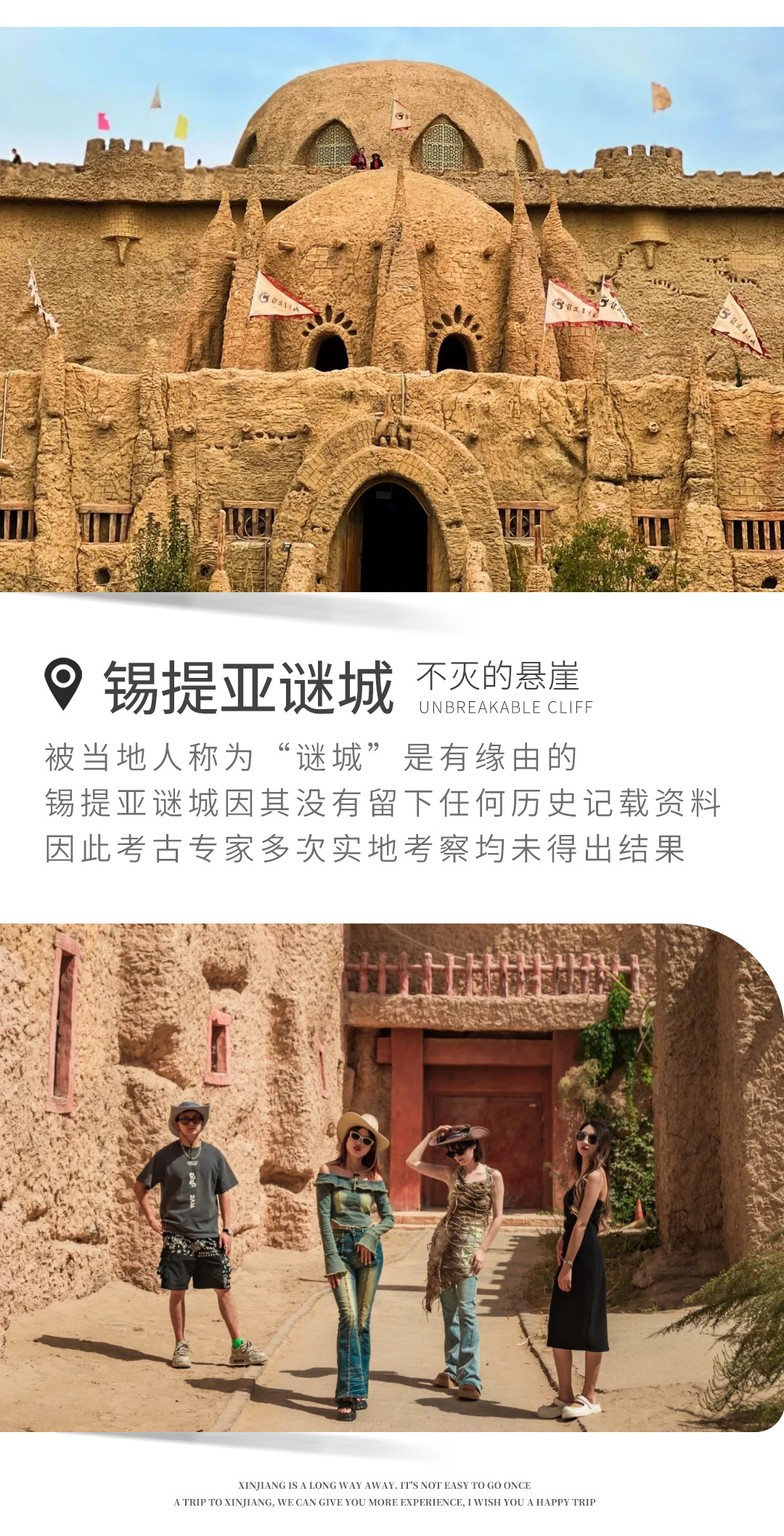 今日出发前往锡提亚迷城,这座沉睡在新疆叶城县沙海中的古城,以其“不灭的悬崖”之名,被当地人亲切地称为“谜城”。锡提亚迷城不仅向游客展示了南疆地区独特的风土人情,还通过历史与现代的交融,让人体验到西域的美丽风景和维吾尔族人民的热情。探索锡提亚迷城,仿佛穿越时空,感受那段历史的沉淀与文化的交融。