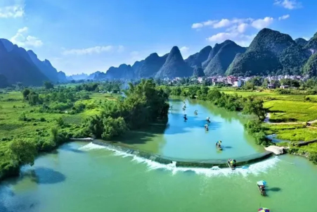 14:00前往【遇龙河多人竹筏】码头(门票已含,游览时间约为1小时)人称“小漓江”,不是漓江胜似漓江。在其上泛舟漂流,赏两岸桂林山色,才不虚此行。两岸山峦百态千姿,河畔翠竹叠嶂,蕉临四季常青,沿岸地稻田一年四季颜色不断变化,田野里一片生机勃勃,诗情画意尽显其中。