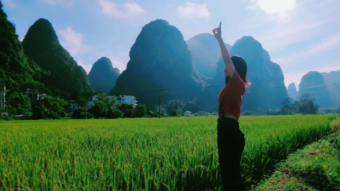 骑行十里画廊,从阳朔县城出发,经过蝴蝶泉景区,到达遇龙河工农桥码头,往月亮山方向骑,约15分钟车程,即可到达月亮山,打卡月亮山(不爬山),后返回工农桥码头往遇龙河方向骑行,经过大片农田,到达遇龙河著名打卡点--大水车,停好自行车,拍照、闲逛等