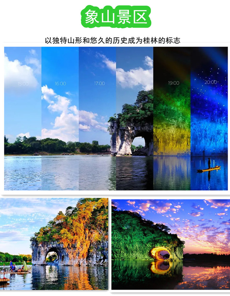 于指定时间前往高铁站乘坐动车(约3.5小时)前往素有“山水甲天下”之称的桂林。,我们相聚山水甲天下的桂林。到水墨山水画般的桂林。