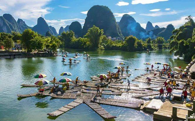 8:00前往草坪码头【坐竹筏游漓江】世界著名的漓江蜿蜒流于该镇西南部,境内江段长达20多公里,两岸群峰连绵,如剑芒排扦,奇特怪异,万态千姿,绿水滢回,青山环列,倒影幢幢,翠竹成林,垂柳如茵,泛舟江心帆星点点,相映成趣。