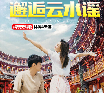 早餐后出发前往【云水谣】(车程约2小时):云水谣是个历史悠久的古老村落,属于世界文化遗产"福建土楼"的一个景区,国家5A级。村中幽长古道、百年老榕、神奇土楼,还有那灵山碧水,无不给人以超然的感觉。那里山川秀美、人文丰富。电影《云水谣》,在此拍摄取景。在福建土楼“申遗”成功后,《云水谣》这部优秀作品的人文意蕴(运)和道德情感充分展现在这条闽西南古栈道上,让游客在观赏奇楼美景,领略古道悠悠、碧水青青的同时,感受闽台交流的深远渊源。《爸爸去哪儿》曾经也在此进行拍摄。