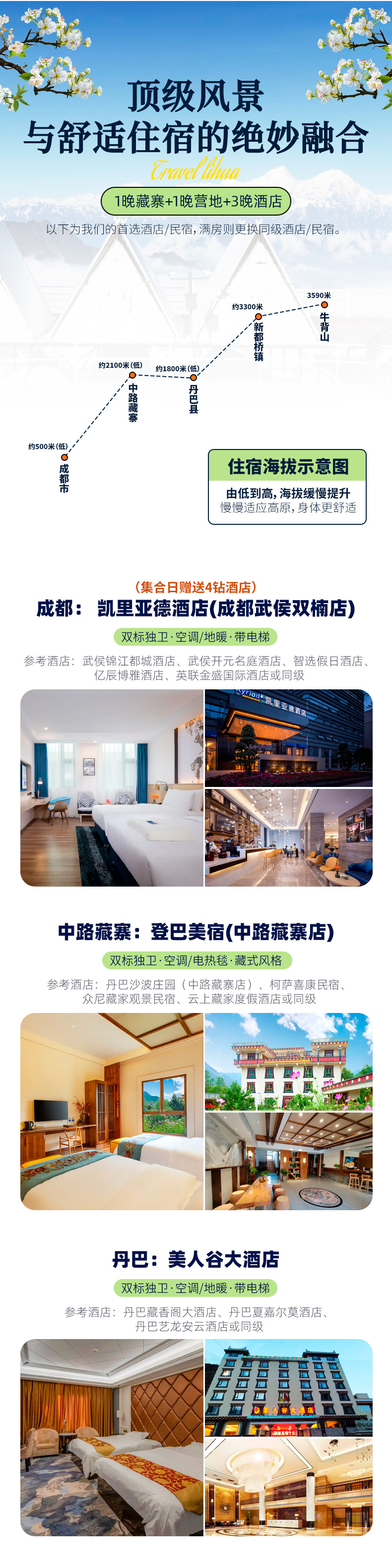 2、住宿:全程5晚标间住宿(含集合日赠送1晚4钻酒店、不住不退);
