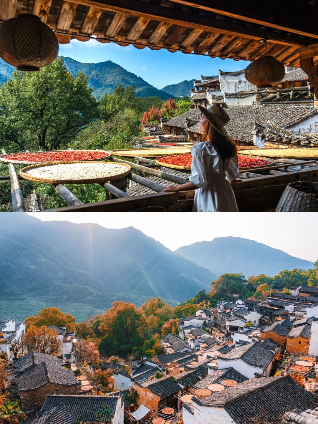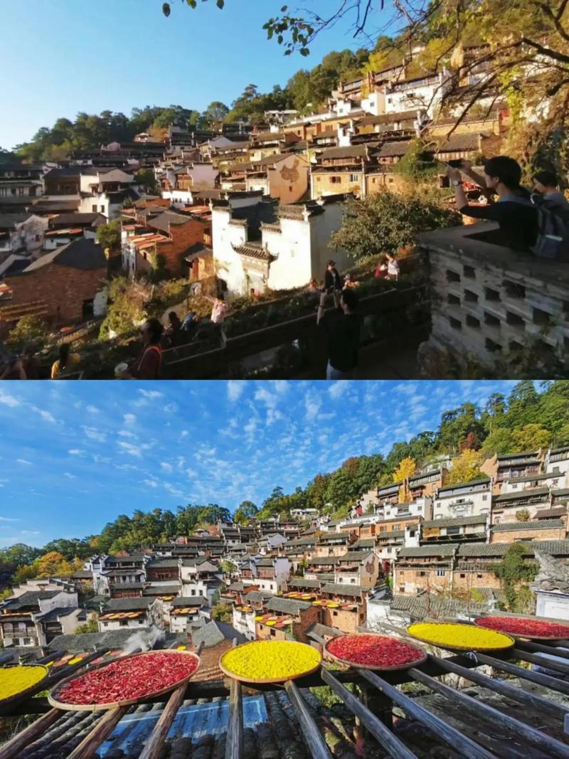 早餐后,前往游览 【婺源篁岭古村】(不含往返缆车130元/人,游览景区内精华景点需乘坐往返缆车,如不购买往返缆车则无法入园参观,如因时间、天气或个人等因素没去,另旺季高峰期会乘坐索道或者景区交通车上下山,游览约3小时)民居围绕水口呈扇形梯状错落排布。周边千棵古树环抱,万亩梯田簇拥,村落“天街九巷”似玉带将精典古建串接,徽式商铺林立,前店后坊,一幅流动的缩写版“清明上河图”。 【天街】民居围绕水口呈扇形梯状错落排布,U形村落带您体验南方的“布达拉宫”。徽式商铺林立,前店后坊,一幅流动的缩写版“清明上河图”。家家户户屋顶晒盘云集,绘就出一幅“晒秋人家”风情画。 【卧云桥、垒心桥】索桥似玉带将两岸的梯田串接。体验百米高空玻璃栈道。“鲜花”是点缀,象征惬意优雅的生活方式,“小镇”是主体,是580年历史积淀的篁岭文化古村,鲜花与古村相伴,鲜花与古建斗趣,二者结合是乡村田园生活的写照,是生态与人文的融合,是梦里老家乡愁的延续。