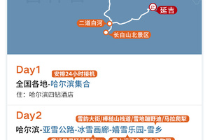 4、长白山北坡有很多小景点,除天池外其他景点可能根据当天景区内客流量情况进行增减,行程中的游览时间和游览景点仅为理想情况参考,我们会尽量安排,但是不能保证当天能全部游览,望您悉知。