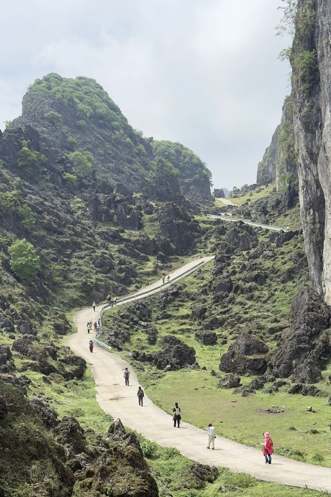 下午走出溶洞继续翻越天坑谷地、乱石坡、灌木林前往第二处地下河、看大圣之眼、探密牛倒岩洞中瀑布、凹造型拍美照、看穿洞,随后出山沿乡道返回起点,乘车前往安顺市区入住酒店,结束当天的徒步行程。
