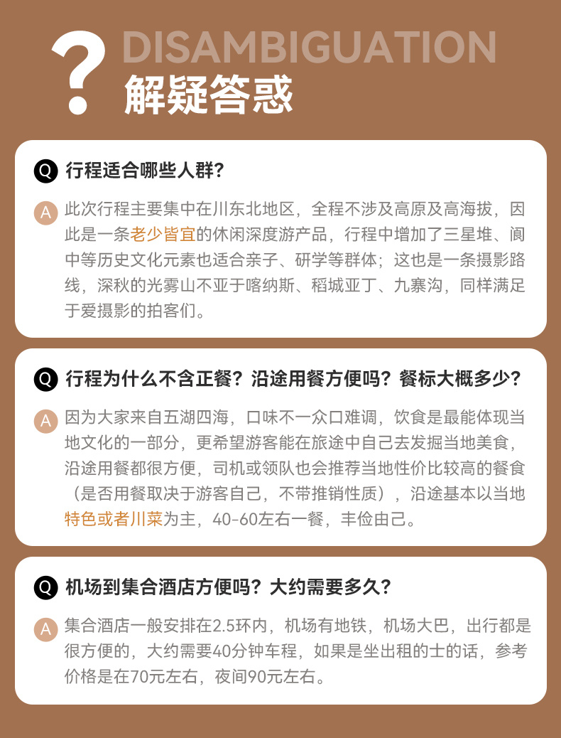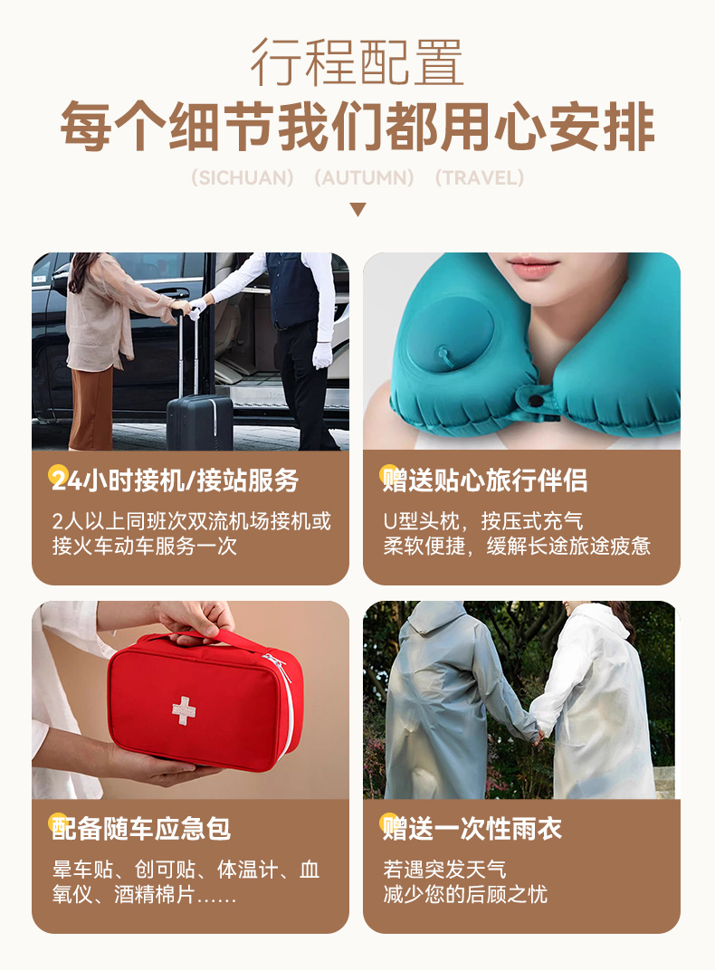 其他 | 成都集合日四钻酒店1晚、巴中特色早餐、旅行伴旅(充气按压式头枕)、一次性雨衣、二人及以上同一班次接机接站服务一次(双流机场/动车站) |