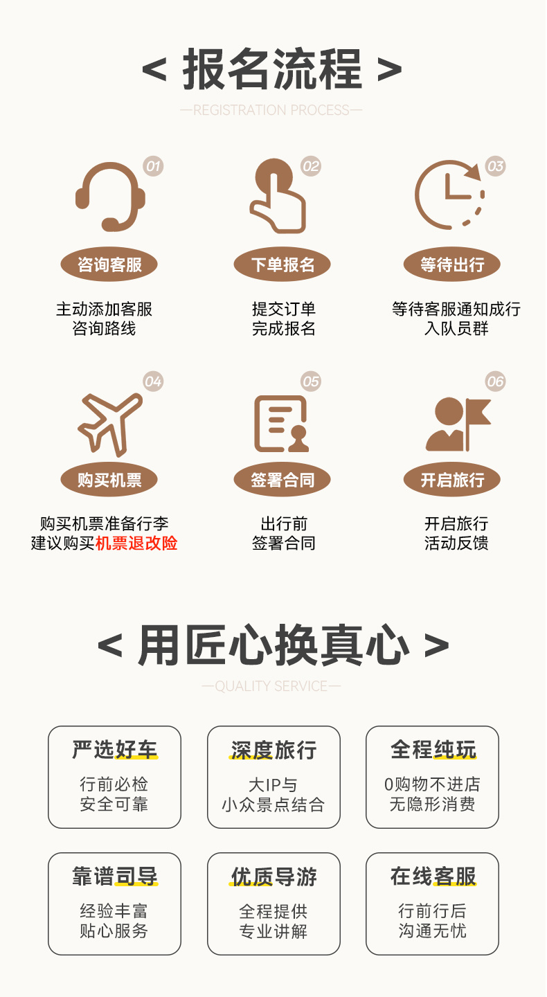 特别说明:根据季节、天气、交通、景区限流等情况,我司在不减少景点的前提下有权调整景点游览的先后顺序,以保证各位贵宾行程完整!请报名前仔细阅读并知悉!