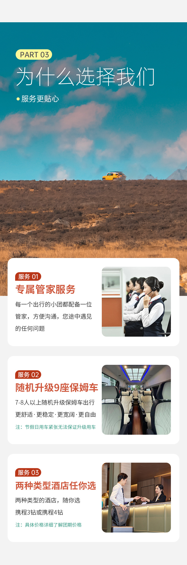 (3)本线路没有“代购业务”,请不要在团队中或者完团后,请求驾驶员代购任何产品,如有需要请自行筛选、购买。