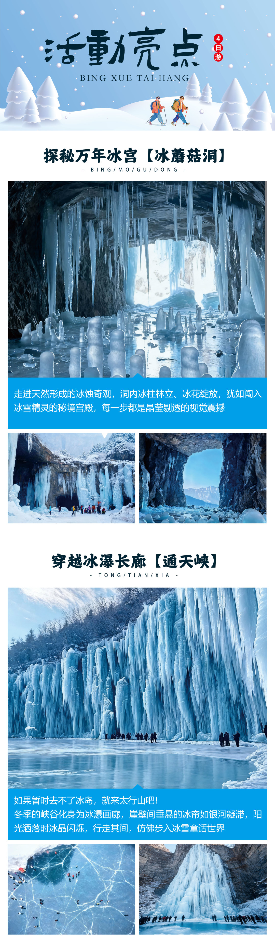 早餐后,出发探访太行山冬季限定的自然奇观——【冰蘑菇洞】。她是由山泉漫流、滴水穿石,在特定地貌与严寒气候下共同雕琢出的地质杰作。