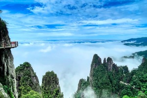 10:30 深度游览五指峰景区,漫步悬空栈道,南中国最长的悬空栈道;总长约8公里,海拔1400米至1600米,两层栈道,全程无障碍观光环线,登高山、临绝壁如履平地,尽享“非人”奇遇。