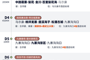 4、景交:四姑娘山双桥沟观光车70元/人(必须)、九寨沟观光车80元/人(必须)、桃坪羌寨老寨子门票60元/人(可选);