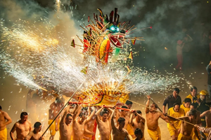 最初是当地客家人为祈求风调雨顺、五谷丰登而举行的元宵庆典。烧火龙以长达40多米的龙身装满烟花、火箭,舞动时火花四射,场面震撼。