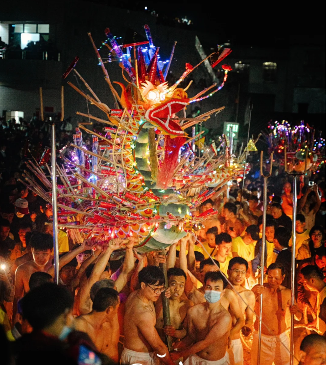 15:00左右前往观看[舞火龙]。