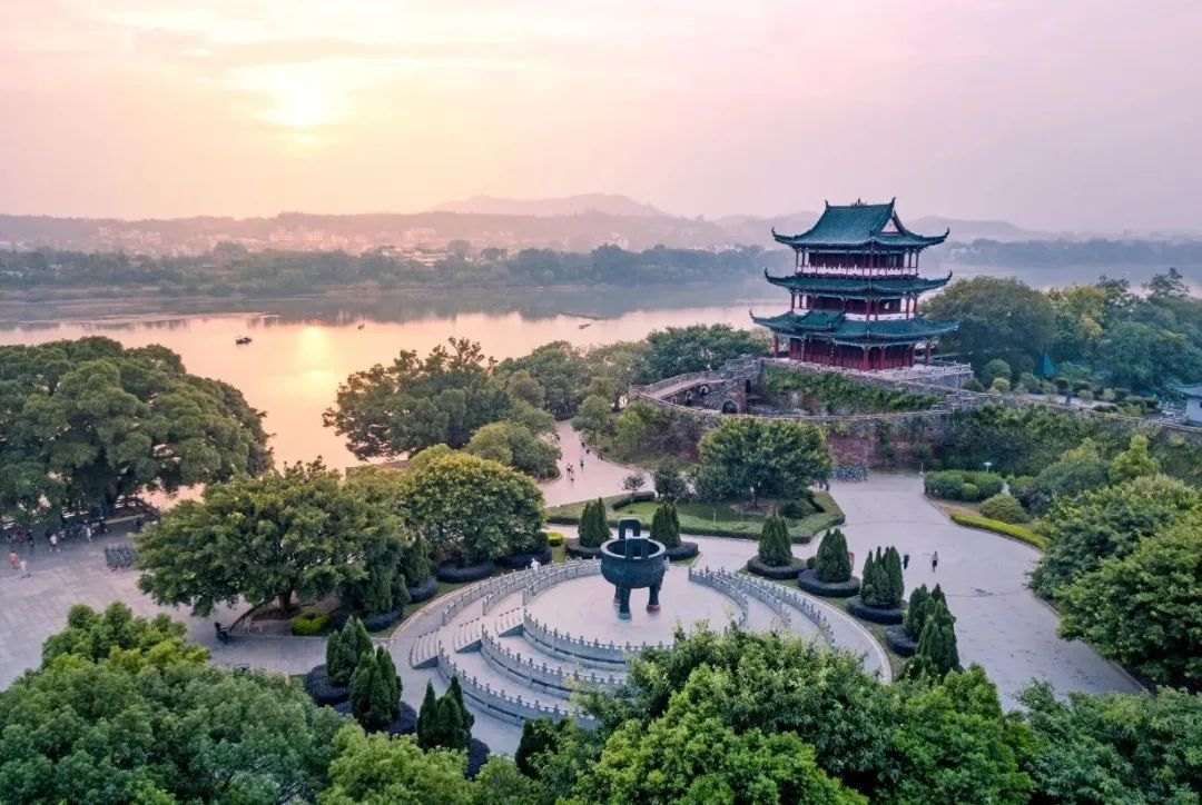 登临苏轼题诗的八境台,见证章江与贡江在此相拥成赣江,感受"八境图画"的山水格局。